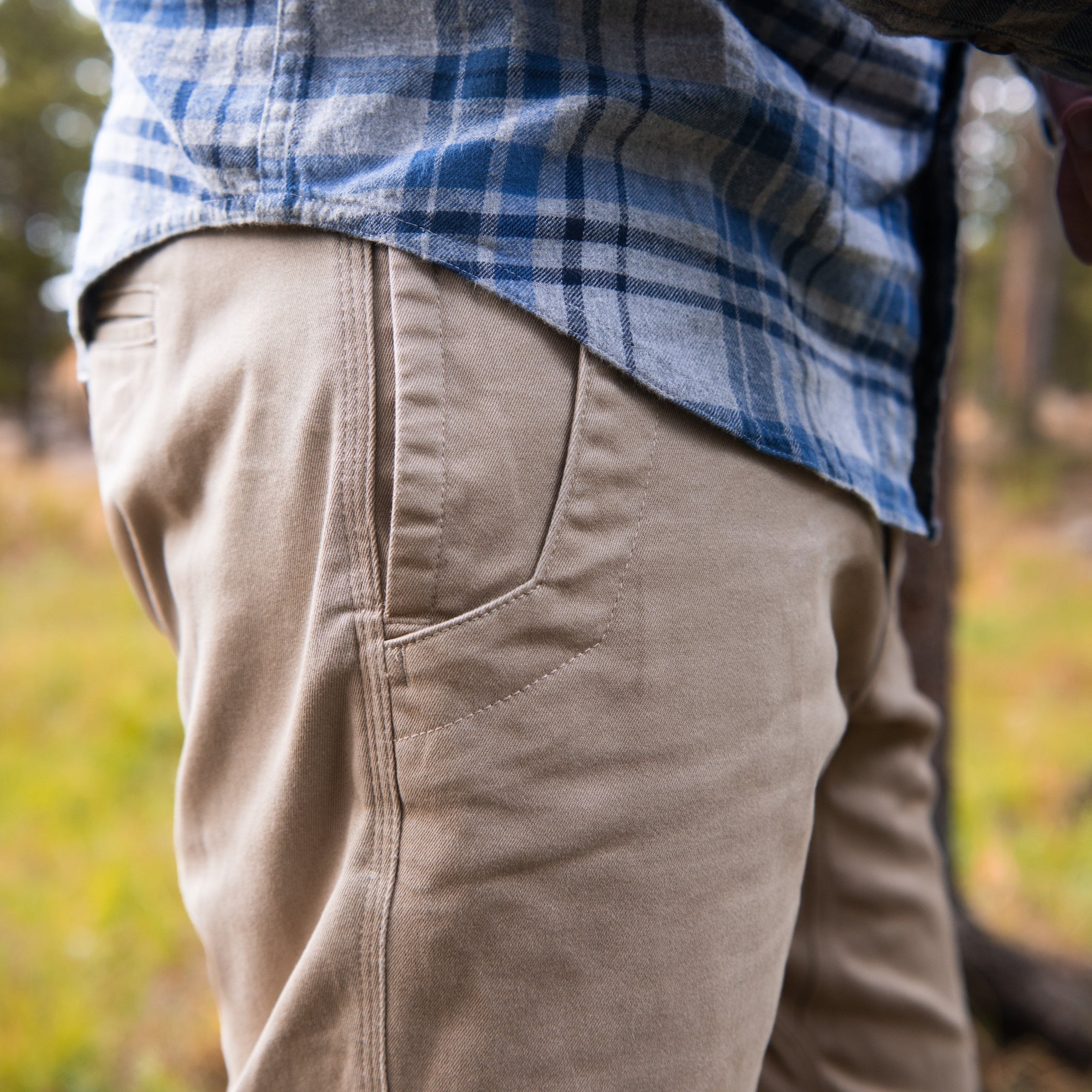 Available for a limited time. Introducing the Teton Twill Pant, a beloved classic making its triumphant return. Crafted with an action gusset crotch, triple-stitched seams featuring bartac reinforcement, and "Mudflap" heel construction with a double layer for durability, these pants are designed to withstand all your adventures. The right-hand double pocket includes a deep drill pocket for added utility. With its classic fit and sturdy cotton construction, these pants are an enduring favorite for the outdoor enthusiast. Elevate your outdoor wardrobe with this timeless classic.