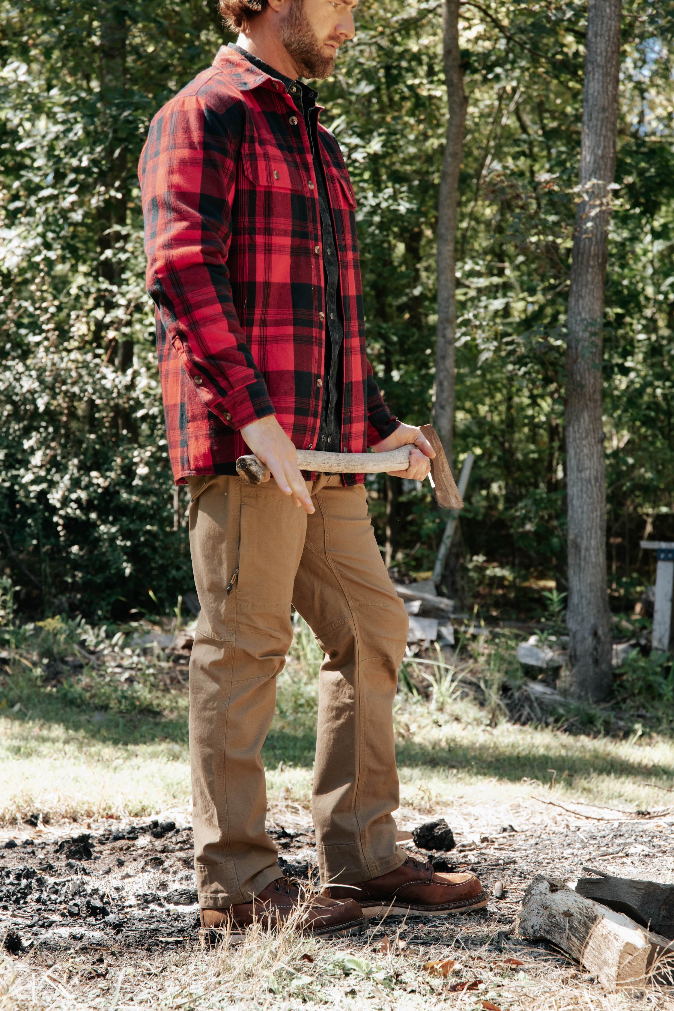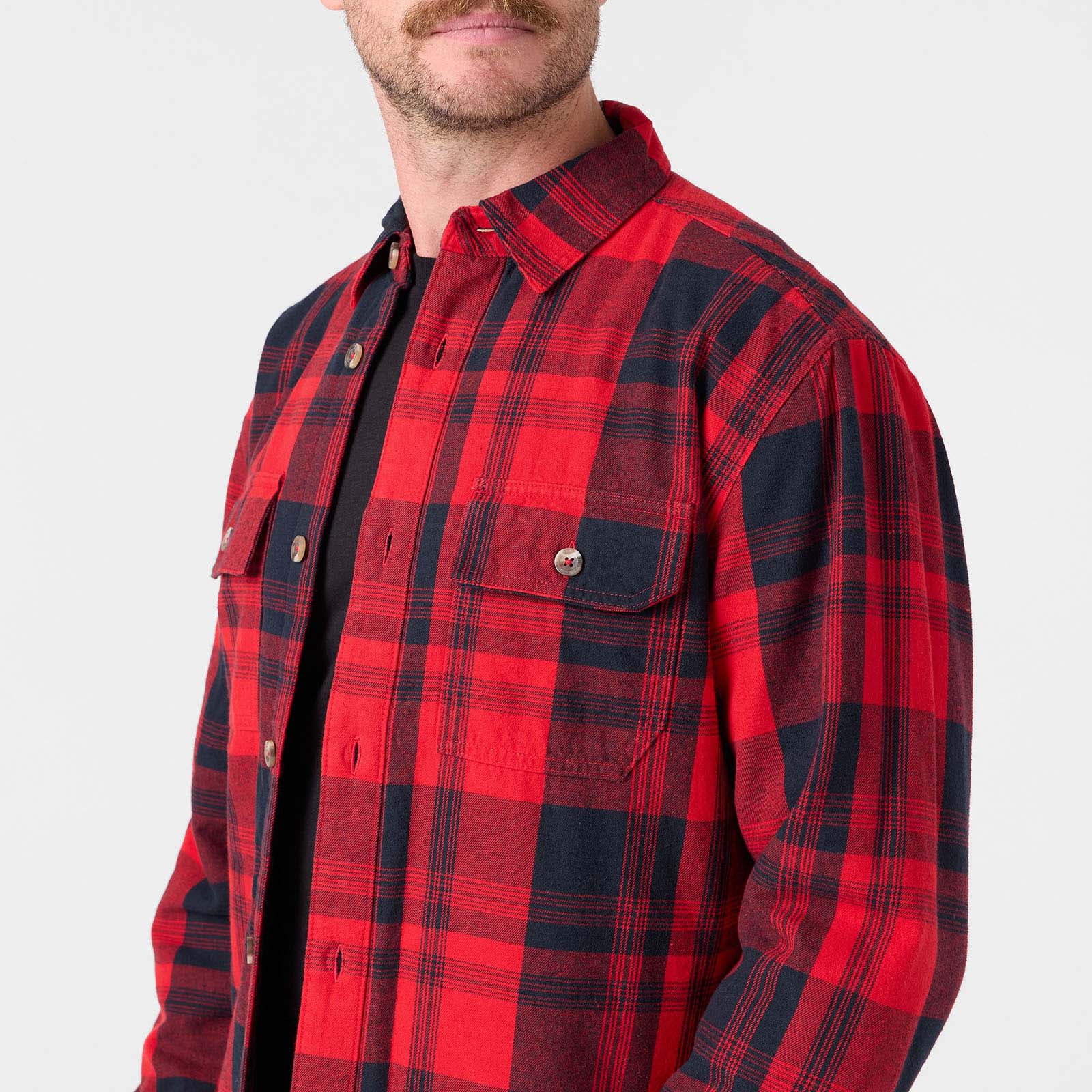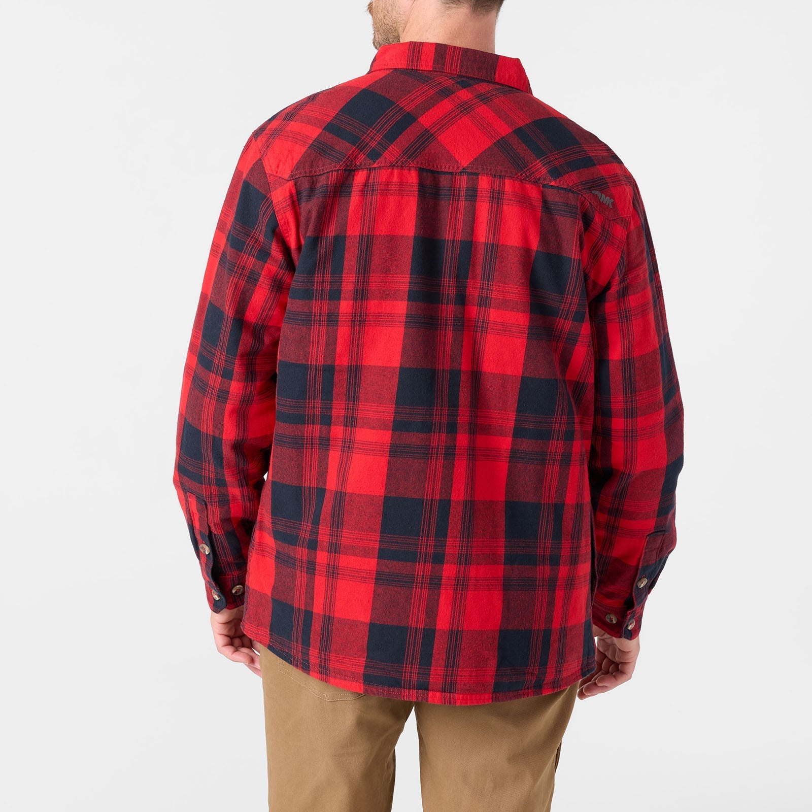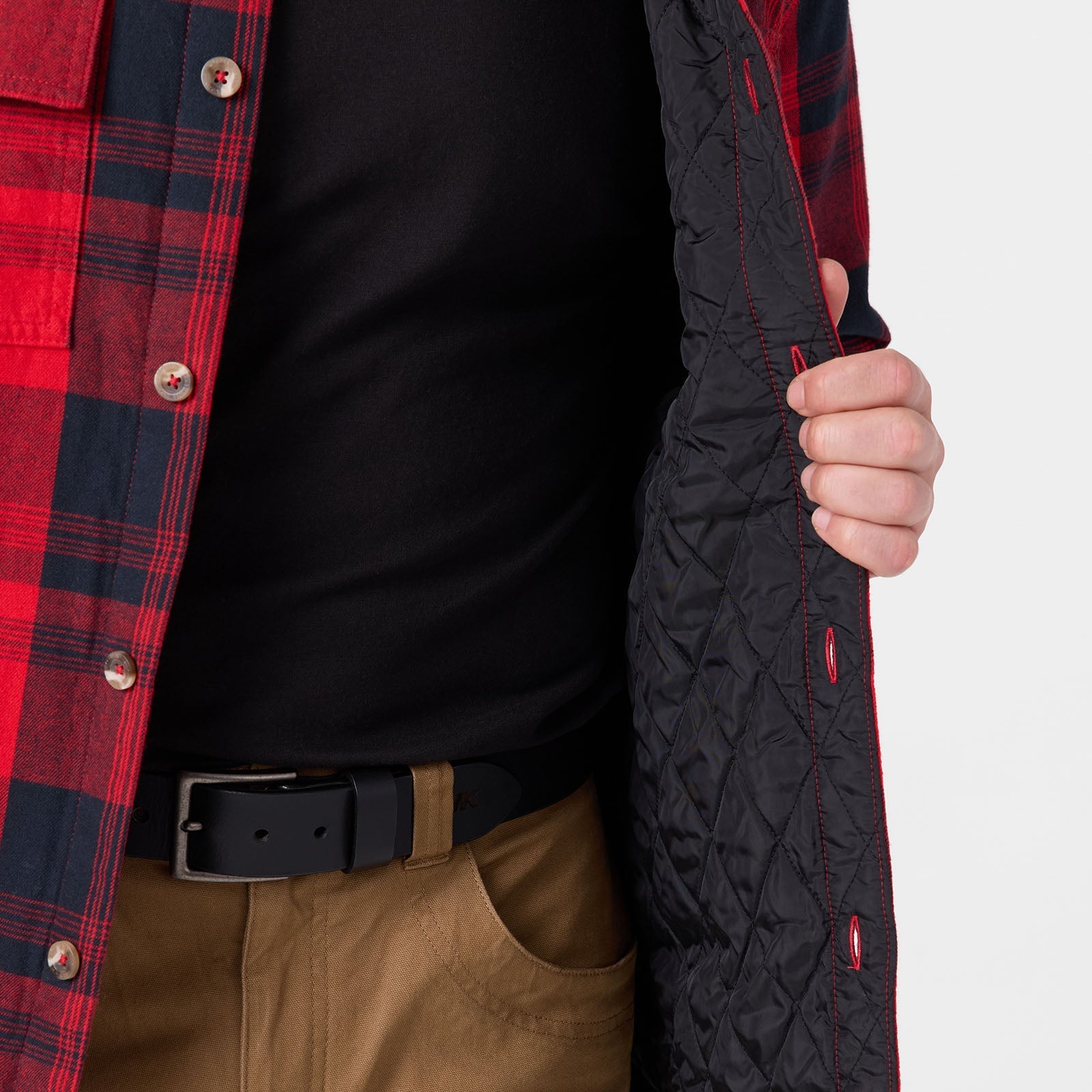 If you’re staring down a forecast that looks a little unpredictable, you can rely on a Shirt Jacket for all your proper layering needs. This 3 season lined shirt keeps you warm and comfortable. A relaxed fit, designed with extra room for layering. Soft brushed flannel exterior, with an insulated quilted interior. Two chest pockets with button closure and a custom bison snap on the bottom placket, hand pockets, and finished with our MK icon embroidery on the back yoke.