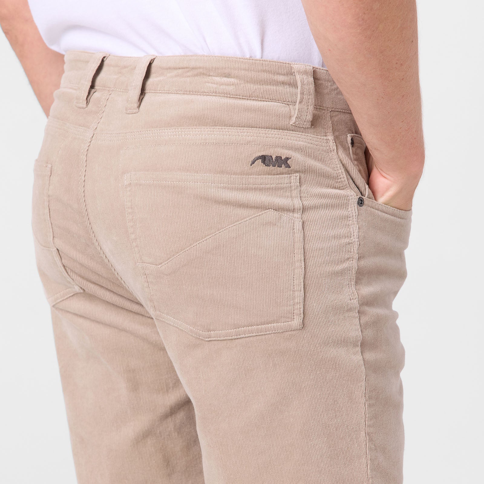 - MK icon embroidery above back right pocket