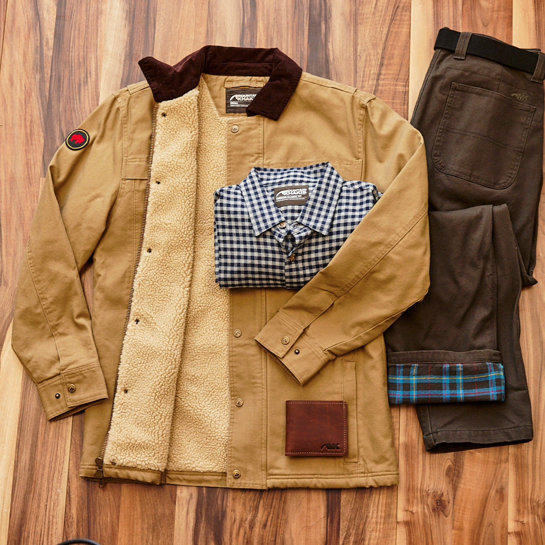 New Sullivan Ranch Jacket - Inspired by true mountain men who require durability and warmth. The Sullivan is durable, rugged and versatile. The heavy wax coated canvas exterior makes this style water repellent and wind resistant. The sherpa interior lining has been a staple for us throughout the years. The bi-swing shoulder construction is engineered to move with you, not against you.