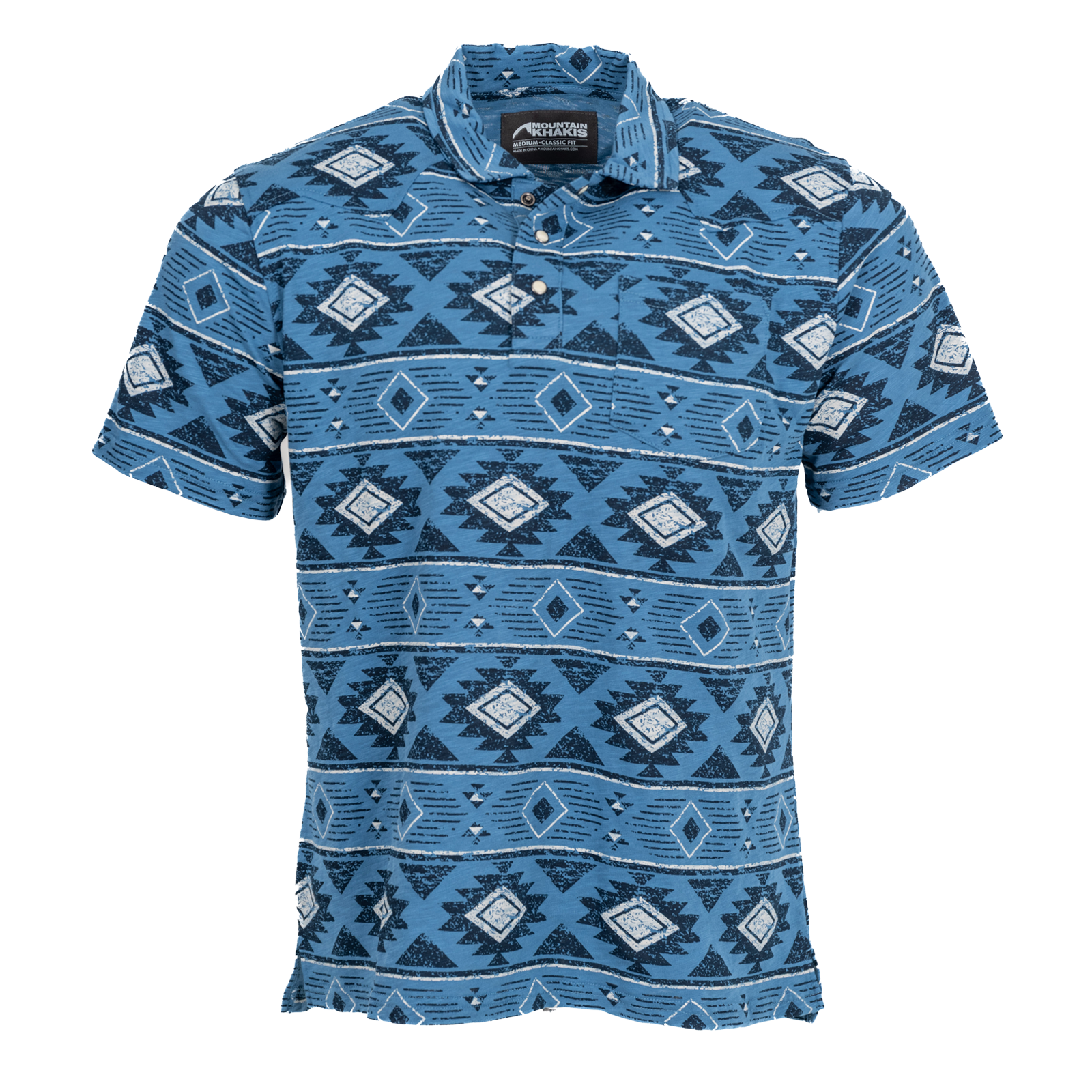 Embrace the rugged spirit of the western frontier with our Ranger Western Polo. Crafted from premium organic cotton, this polo raises the standard with its distinctive western-style yoke and pearl snap buttons. Perfect to pair with a pair of jeans or our khaki shorts.Available in two solid colors and a bold print.