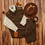A true outdoorsman piece. The exterior of the Archer Herringbone Vest is a classic and rich herringbone texture blended with wool and polyester. The interior is filled with DuPont™ Sorona which is a renewably sourced plant-based insulation that is naturally soft and fluffy but contains supreme warmth retention. At the interior collar band, you’ll find an 18 wale corduroy lining that keeps your neck comfortable and warm but also adds style points to an already impressive piece. A durable YKK metal zipper seals in the warmth and is finished off with a premium branded leather zipper pull. Complete with quick-dry fleece-lined hand warmer pockets and our iconic Bison Patch on the center back neck.