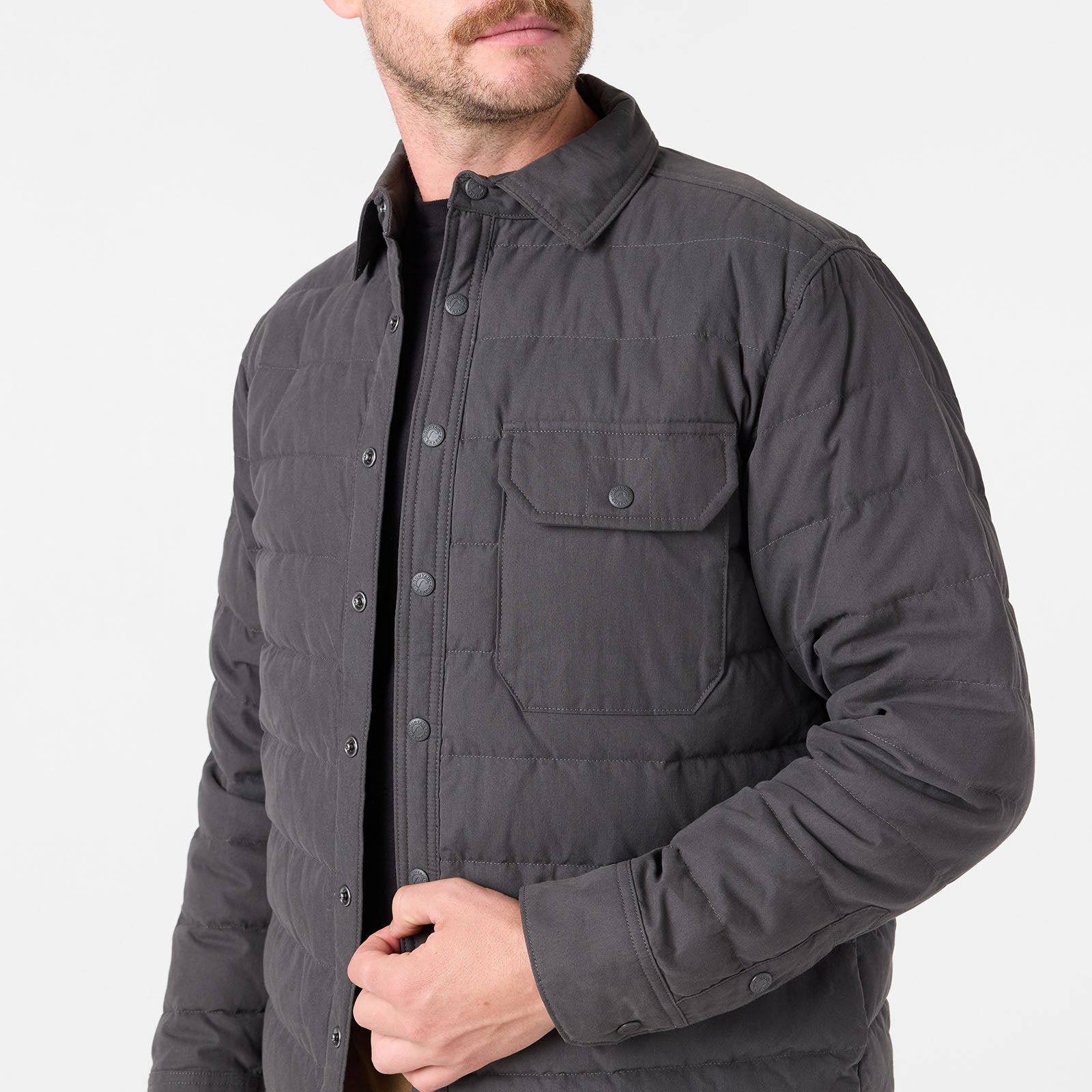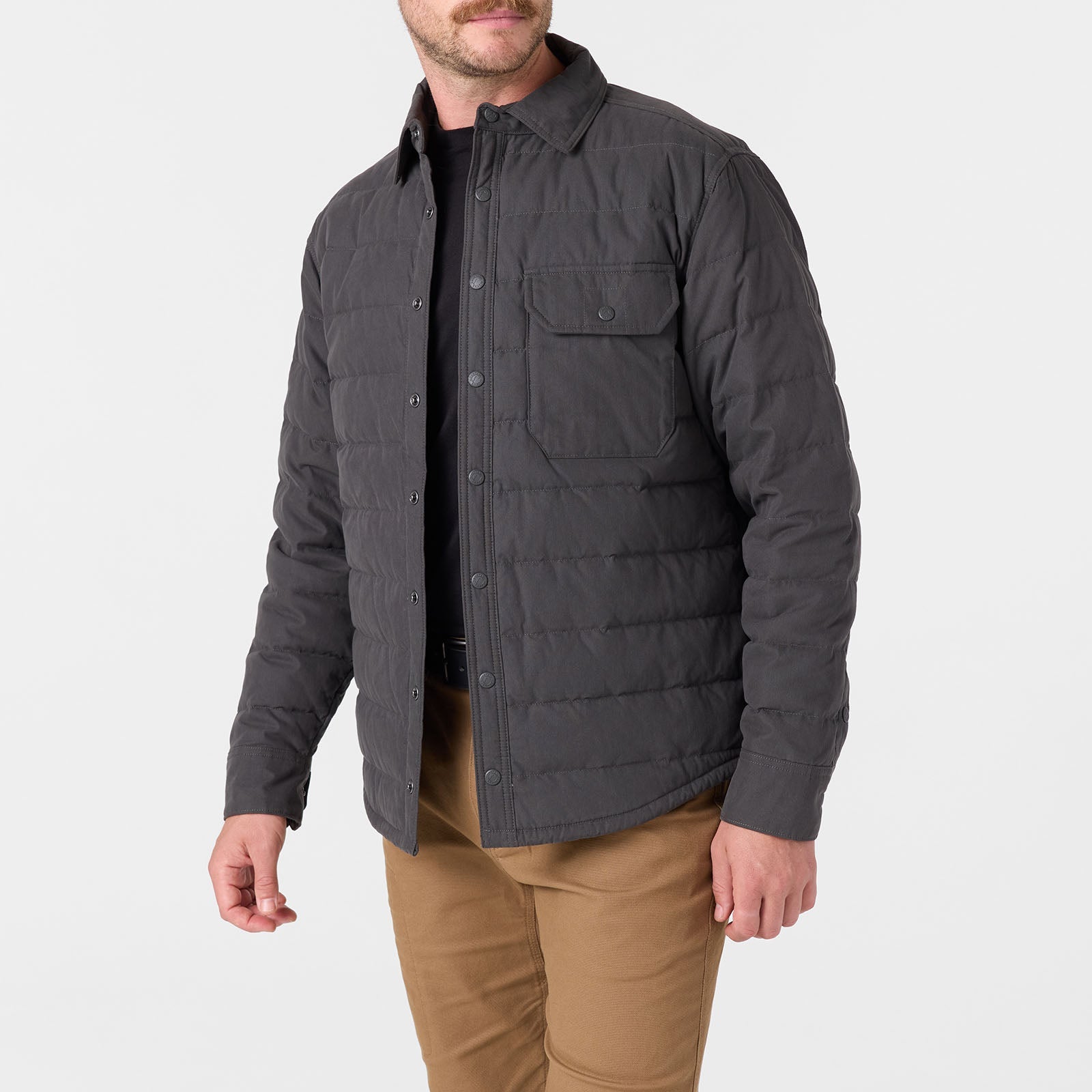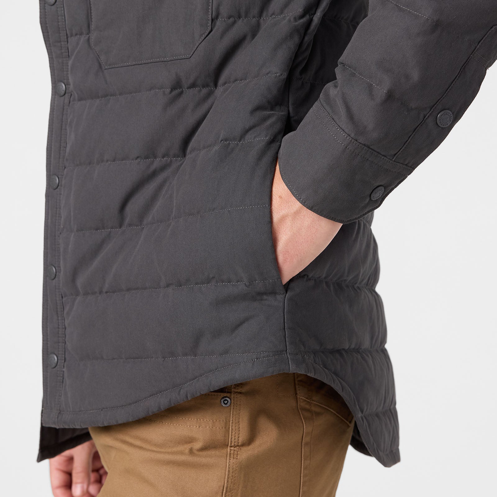What is a Shirtjac? Quite simply it's a shirt-jacket combo that makes an excellent work shirt and layering piece. Get the best of both worlds with a responsibly sourced down filled jacket that wears like a shirt. Pop-up rain showers? We’ve coated this lined shirt with a durable water repellency to help keep you dry. Easily accessible snap closure pockets are on the chest and on the interior chest. Side entry hand pockets with quick-dry fleece lining to keep your hands warm when you need to lean more into the “jac” side of this piece.